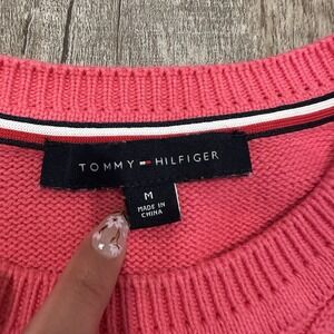 Tommy Hilfiger Sz M Pink Cable Knit Sweater Chunky Neutral Basic Minimalist Y2K . excellent used condition. cable/diamond knit. 100% cotton.
