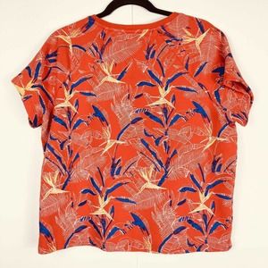 Tommy Hilfiger Sz M Spell Out Tropical Boxy Crew Neck Shirt Orange Leaves Print