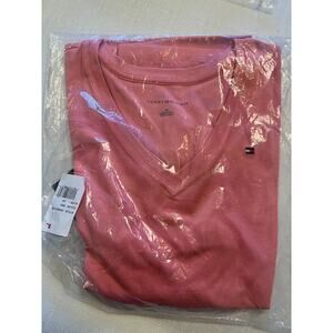 Tommy Hilfiger T Shirt Women's 0X XL V Neck Pink Casual Short Sleeve Logo Tee