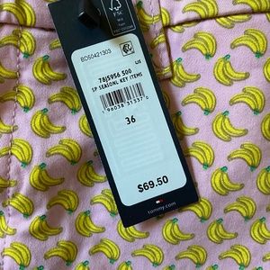 Tommy Hilfiger TH Flex 9” Chino Shorts Banana Print Mens Size 36 Pink / Yellow