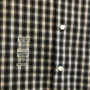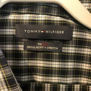 Tommy Hilfiger THFLEX Button Up Plaid LS Shirt Sz M 32/33 15 1/2" NWT Black Whit