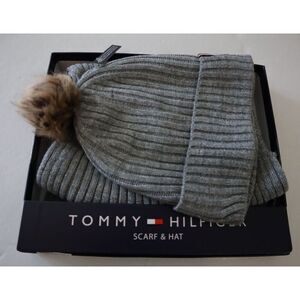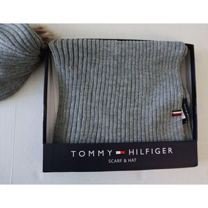 Tommy Hilfiger THW000148C-032 Women's OS Gray Pom Hat & Scarf Set