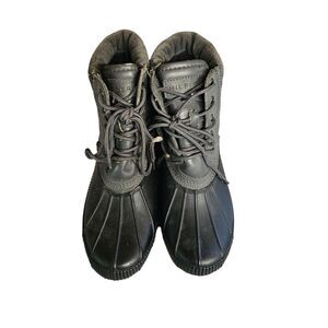 Tommy Hilfiger TM Charlie Water Resistant Leather Rubber Duck Boots Gray 8