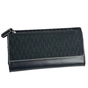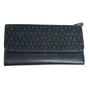 Vintage Tommy Hilfiger TRIFOLD WALLET Black TH Logo Snap Card ID Jacquard Faux Leather - NEW Condition Without Price Tags!