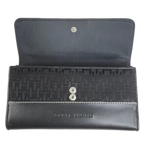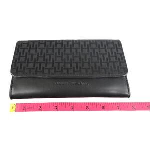 Tommy Hilfiger TRIFOLD WALLET Black TH Logo Snap Card ID Jacquard Faux Leather