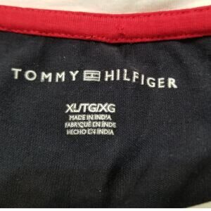 Tommy Hilfiger T-Shirt A-Line Dress Short Sleeves Pullover Round Neck - Size XL; Material - 95% Cotton, 5% Elastane; Machine Wash Cold Gentle; Made in India; Blue Red White, A-line Dress, Knee Length, Short Sleeves, Round Neck;