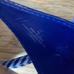 Tommy Hilfiger TW Silmaly Thong Style Patent Leather Strap Blue Sandals Size 7