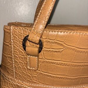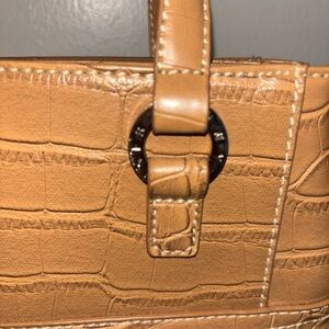 Tommy Hilfiger Tan Crocodile-Embossed Satchel