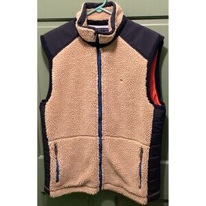 Tommy Hilfiger Tan & Dark Blue Nomad Zip Front Sherpa Sleeveless Vest Mens Sze L