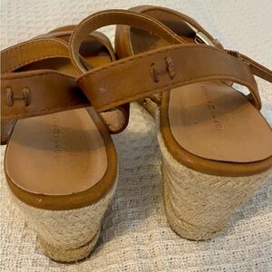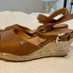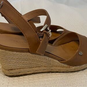 Tommy Hilfiger Tan leather Sandals 6 jute wedge Ankle Strap casual summer