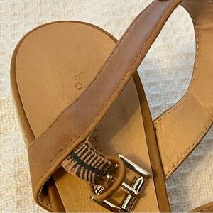 Tommy Hilfiger Tan leather Sandals 6 jute wedge Ankle Strap casual summer