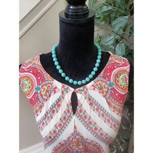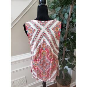 Tommy Hilfiger Tank Top Women's Size XL Multi Geometric Rayon Keyhole Pullover