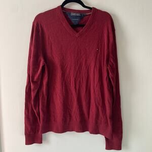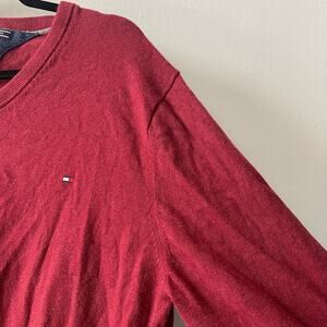 Tommy Hilfiger Red Pima Cotton and Cashmere Blend V Neck Pullover Sweater