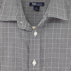This Tommy Hilfiger Flex Button Down Shirt for Youth is brand new without tags, sized 14. Its black and white houndstooth pattern and cotton-poly-spandex blend lend comfort and style.