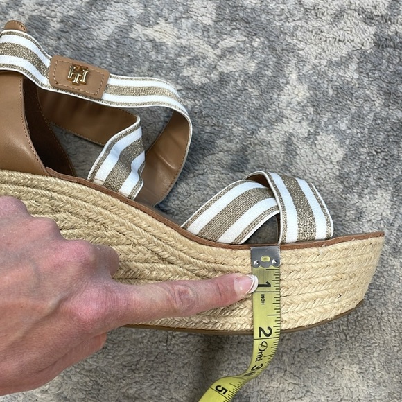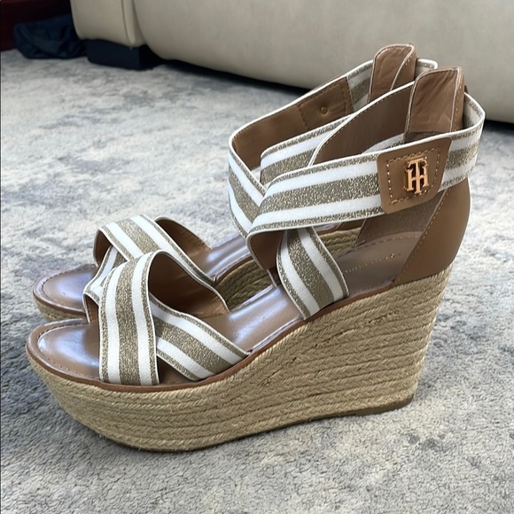 Tommy Hilfiger Theia Cross Strap Platform Wedge Sandals White Gold Sz 10