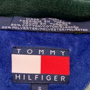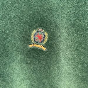 Tommy Hilfiger Embroidered Crest Capsule Classic Logo VSCO 90's Vintage Y2K Throwback 3/4 Neck Zip Hunter Green Velour Unisex Long Sleeve Collared Pullover Sweater