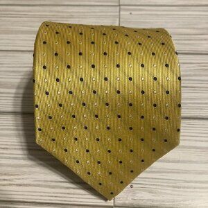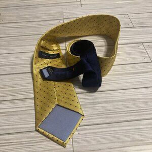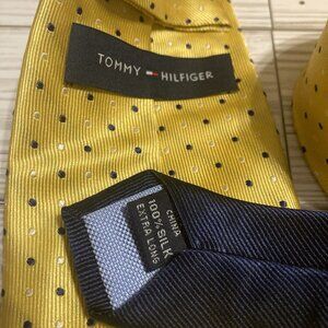 Tommy Hilfiger Tie Extra Long Yellow With Blue /White Polka Dots 100% Silk - EUC