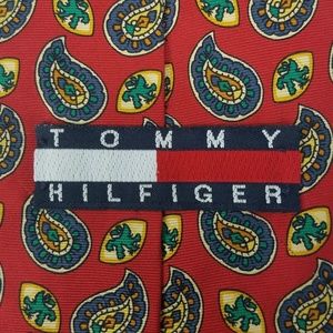 Tommy Hilfiger Tie Vintage 90s Red Blue Paisley Silk Necktie Classic Designer