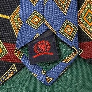Tommy Hilfiger Tie.Diamond Pattern w/ Red and Blue Stripes.Imported Italian Silk