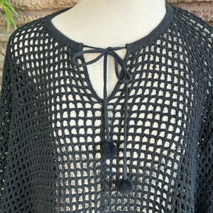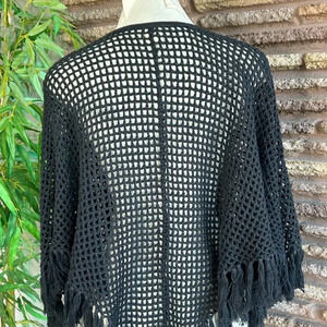 Tommy Hilfiger Tommy Jeans Black Open Weave Fringe Poncho