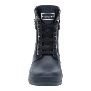 Tommy Hilfiger Toniee Lace-Up Leather Sole TH Logo Rain Boots. Size 6. Pre-Owned with normal signs of wear but good condition!