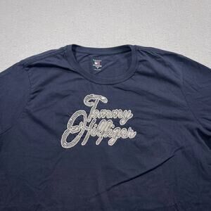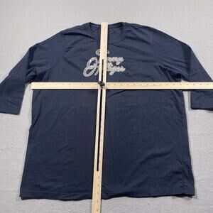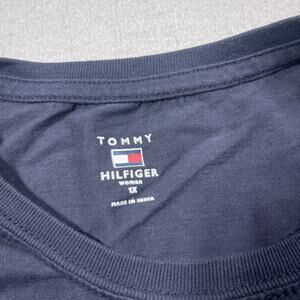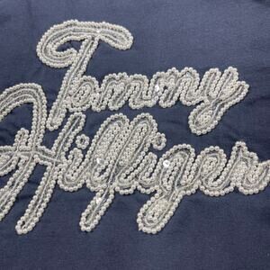 Tommy Hilfiger Top Women 1X Navy Blue Pearl‎ Beaded Logo 3/4 Sleeve Shirt