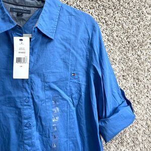 New with Tags Women’s Tommy Hilfiger Bright Blue 100% Cotton Collared Button Down Popover Top in Size Large