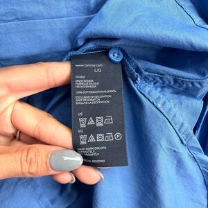 Tommy Hilfiger Top Women’s L Blue 100% Cotton Collared Button Down Popover NWT