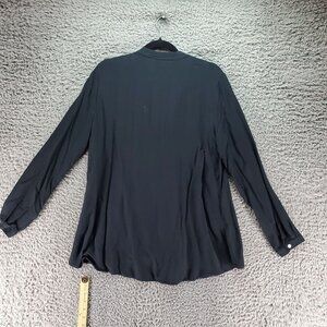 Tommy Hilfiger Top Womens XL Black Banded Collar Button-Down Blouse 100% Viscose