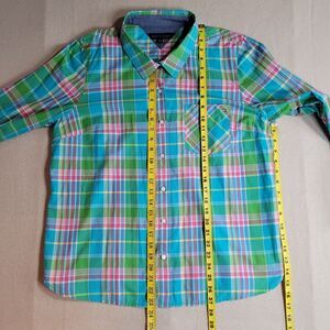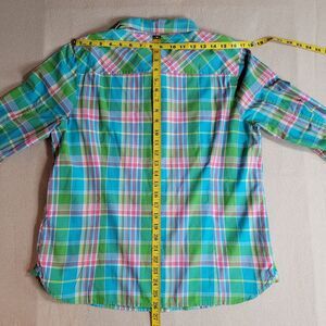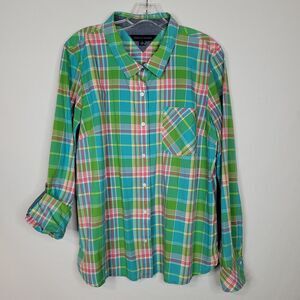 Tommy Hilfiger Top Womens XL MultiPlaid Roll Tab Sleeve Button Up Shirt Classic