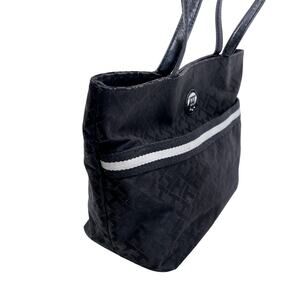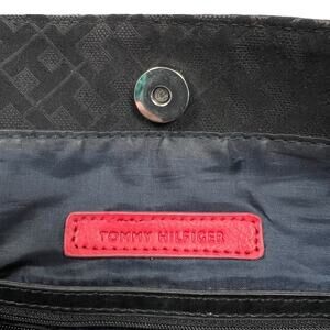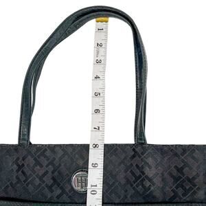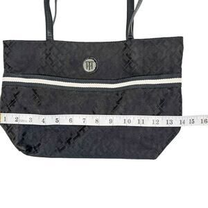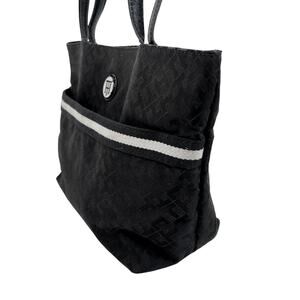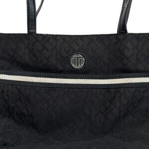 Tommy Hilfiger Tote Black Fabric Bag Allover Monogram Pockets Preppy Shopper