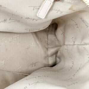 Stylish and functional, this authentic Tommy Hilfiger tote bag is perfect for everyday use. The canvas body is adorned with Tommy Hilfiger’s signature pattern, and the leather handles add a touch of luxury. The spacious interior offers plenty of room for your essentials, while the zip closure ensures your belongings stay secure. This bag shows signs of wear, including interior staining and marks on the handles, but is still a beautiful, functional piece.