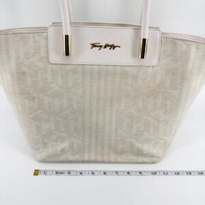 Tommy Hilfiger Tote Handbag - Canvas Large Bag with Leather Handles AW12310