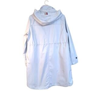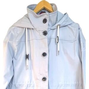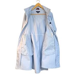 Tommy Hilfiger Trench Coat Hooded Baby Blue Jacket Drawstring Size S/P Preppy
