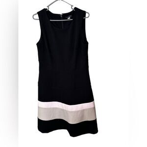 EUC smoke free dog friendly home Tommy Hilfiger Tricot Sheath Dress Stretch Black Striped Border Stretch 12