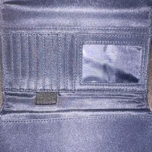 Like new condition. Only used once with a purse that I no longer own. This Tommy Hilfiger clutch wallet offers stylish storage for all of your cards, cash, coins, and even checks. It features a three-fold design that secures with an adjustable snap closure. It includes card slots for your credit cards, bank cards, membership cards, and medical cards, and an ID window slot for your driver's license or ID. An expandable rear zipper pocket on the back provides added storage for coins, a spare key, and other small accessories. It sold for $58 new.