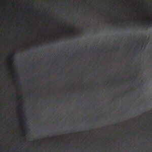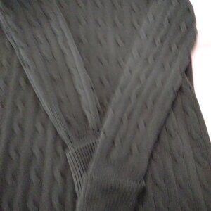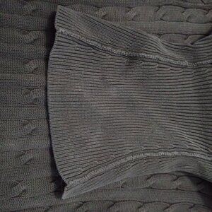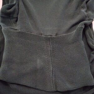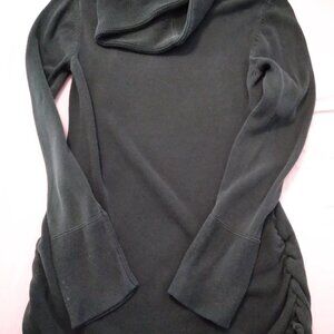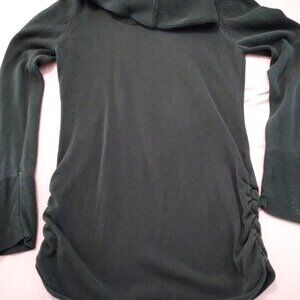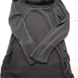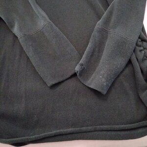 Calvin Klein is a cowlneck with gathered sides. There is a hole/tear on the left cuff along with laundry detergent that did not wash all the way out