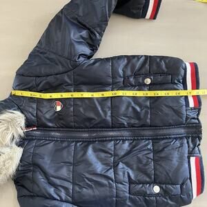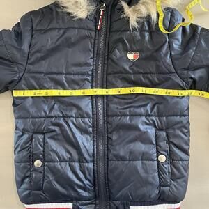 Tommy Hilfiger Unisex Kids Puffer Coat Jacket Hood Faux Fur Heart Logo 6X Blue