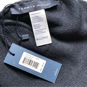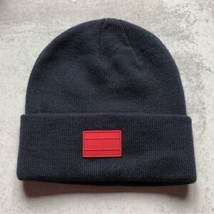 Tommy Hilfiger Unisex Navy Blue Beanie Red Logo One Size NWT