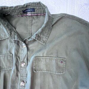 Tommy Hilfiger Utility Dress 10 Army Green Short Sleeve Drawstring Waist TENCEL