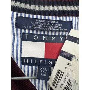 Tommy Hilfiger V Neck Sweater Men XXL Burgundy Preppy 100% Cotton NEW Schoolboy