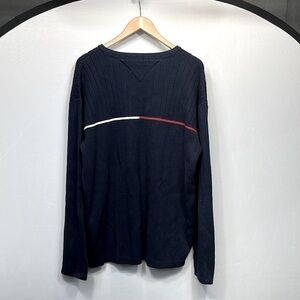 Tommy Hilfiger V Neck Sweater Mens Size XXL Navy All Cotton Ribbed Long Sleeve
