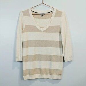 Tommy Hilfiger | V neck Horizontal Striped sweater Cream Tan