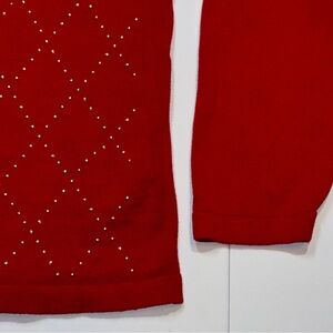 Tommy Hilfiger V-Neck 100% Cotton Sweater Gold Studs Argyle Pattern Size Large