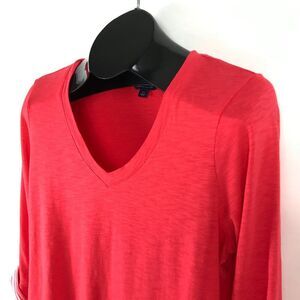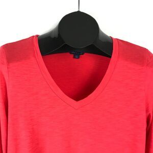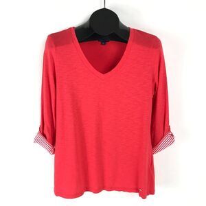 Tommy Hilfiger V-Neck Roll Tab Top Women's Large Stretch Knit Casual Spring