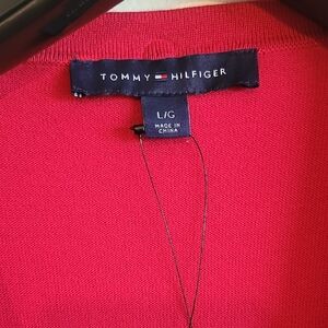 Classic V-neck sweater by Tommy Hilfiger. Vibrant red color. Ideal for versatile styling.