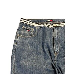 Tommy Hilfiger Vintage 90s Jeans Sick Spell Out Waistband Wide Leg Baggy 40x32