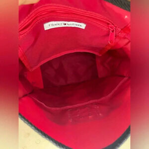 • Design: Red, navy blue, and white colorblock canvas with iconic Hilfiger branding