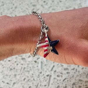 Tommy Hilfiger Vintage Bracelet Star Stripes Charm USA Silver Plated Adjustable