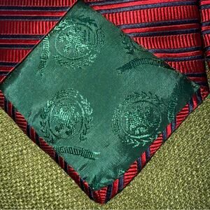Tommy Hilfiger Vintage Men's Neck Tie Red and Navy Stripe with Emblem 100% Silk